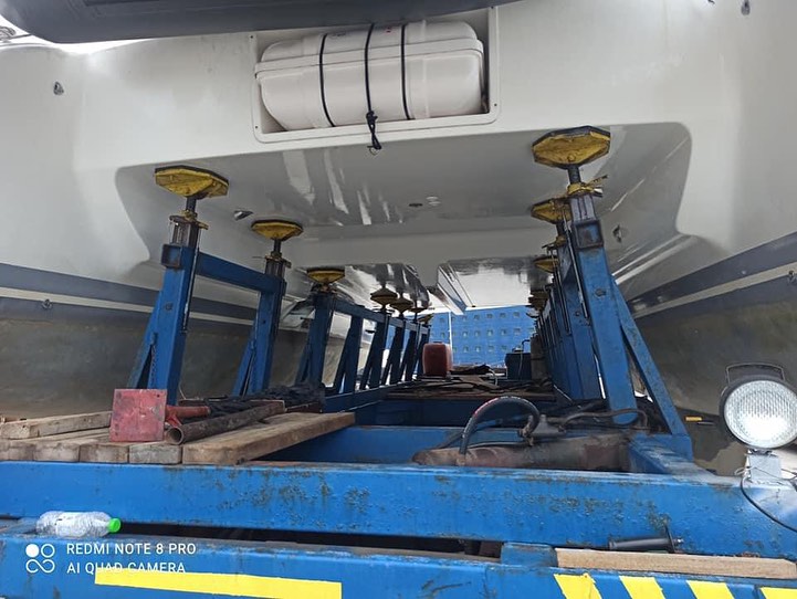 - Boat lifting-lowering using crane and hydraulic trailer